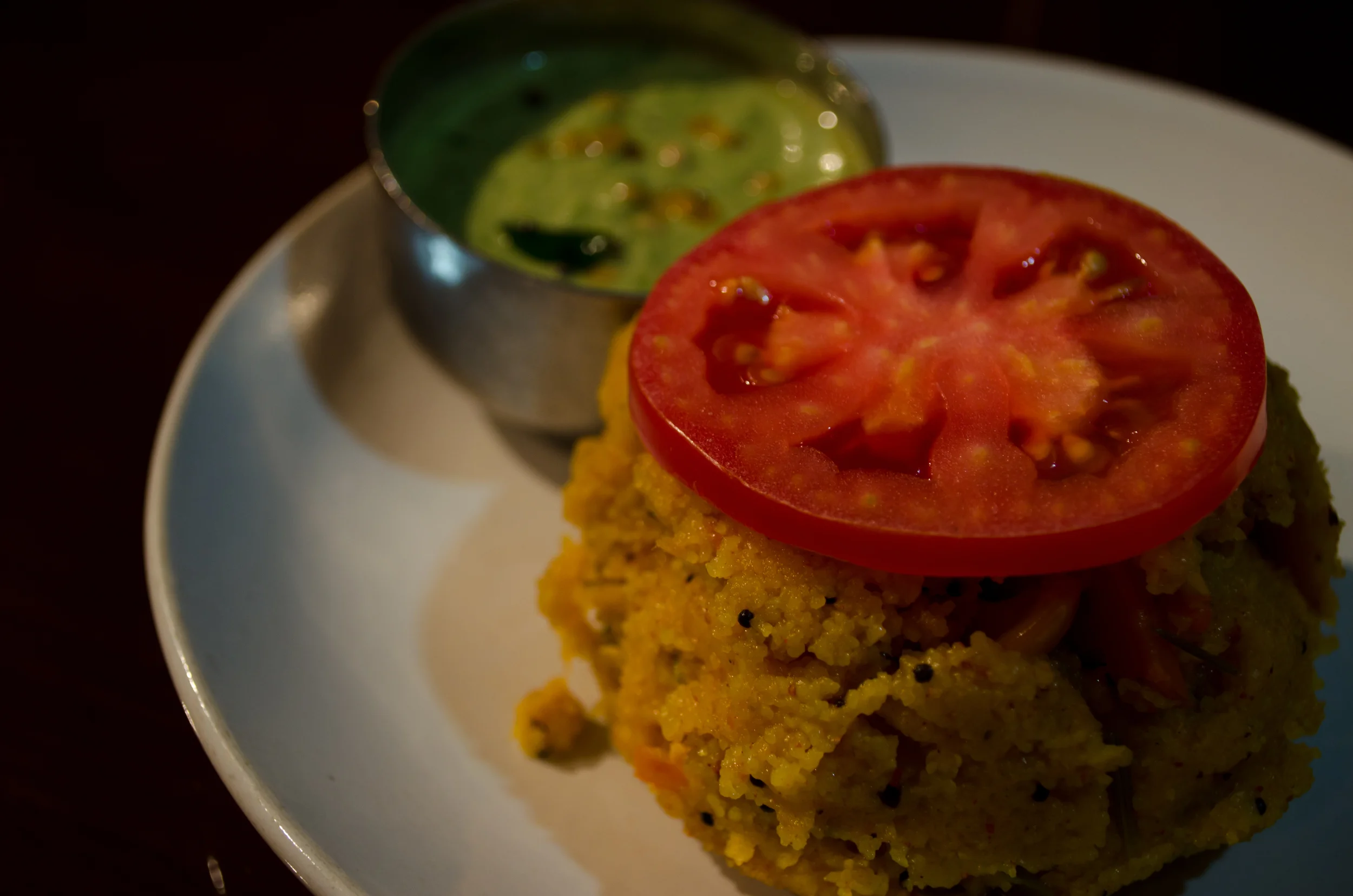 A heady aroma of spices cooked in a blend of roasted semolina, topped with a slice of tomato. The classic kharabhath, now with extra zing!